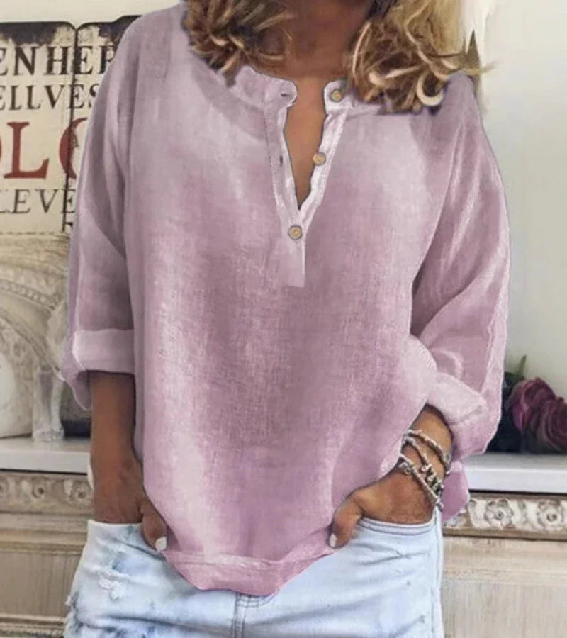 Disponibile in colori intramontabili (bianco, kaki, blu e viola), si abbina facilmente a jeans, leggings o gonne per creare outfit eleganti ma comodi.